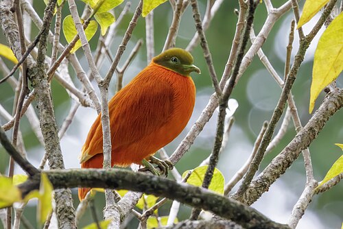 A stunning endemic fruit dove with vibrant orange plumage, thriving in our protected forest canopy.